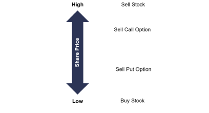 - Sell call options above the price paid for the stock. So, if Telstra shares were bought for $4, he would try to sell call options above $4. The exception to this rule is if a stock has fundamentally deteriorated and a decision is made to sell, or reduce exposure to, that stock.